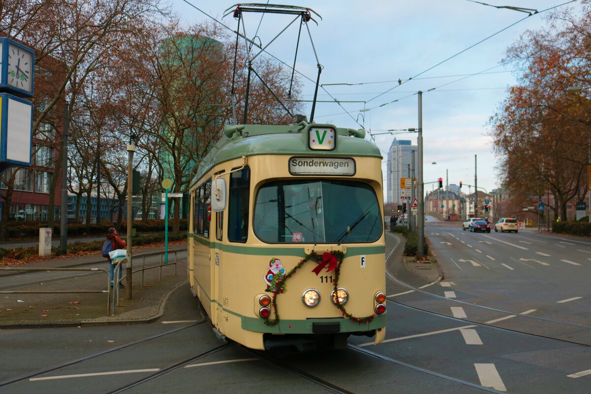 VGF Düwag O-Wagen 111 am 10.12.22 in Frankfurt am Main als Weihnachtsmarkt Tram