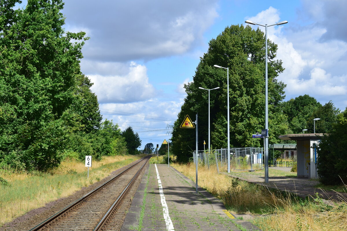 Blick über den heutigen Haltepunkt Meitzendorf. Einst war Meitzendorf ein Bahnhof samt Bahnhofsgebäude. Heute zeugt noch das ehemalige Gleis 1 davon. Das Empfangsgebäude wurde abgerissen. Meitzendorf 02.08.2021