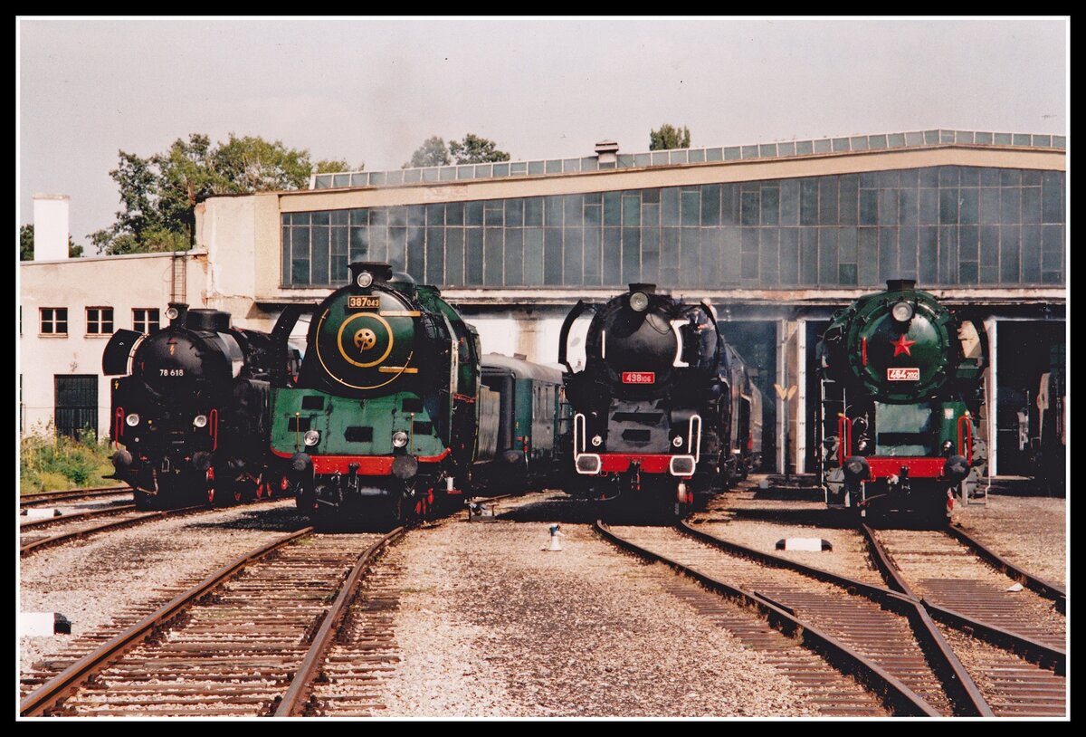 Am 5.09.1994 fand im Heizhaus Straßhof ein internationales Dampfloktreffen statt. Vor dem Lokschuppen haben 4 Loks Aufstellung genommen.