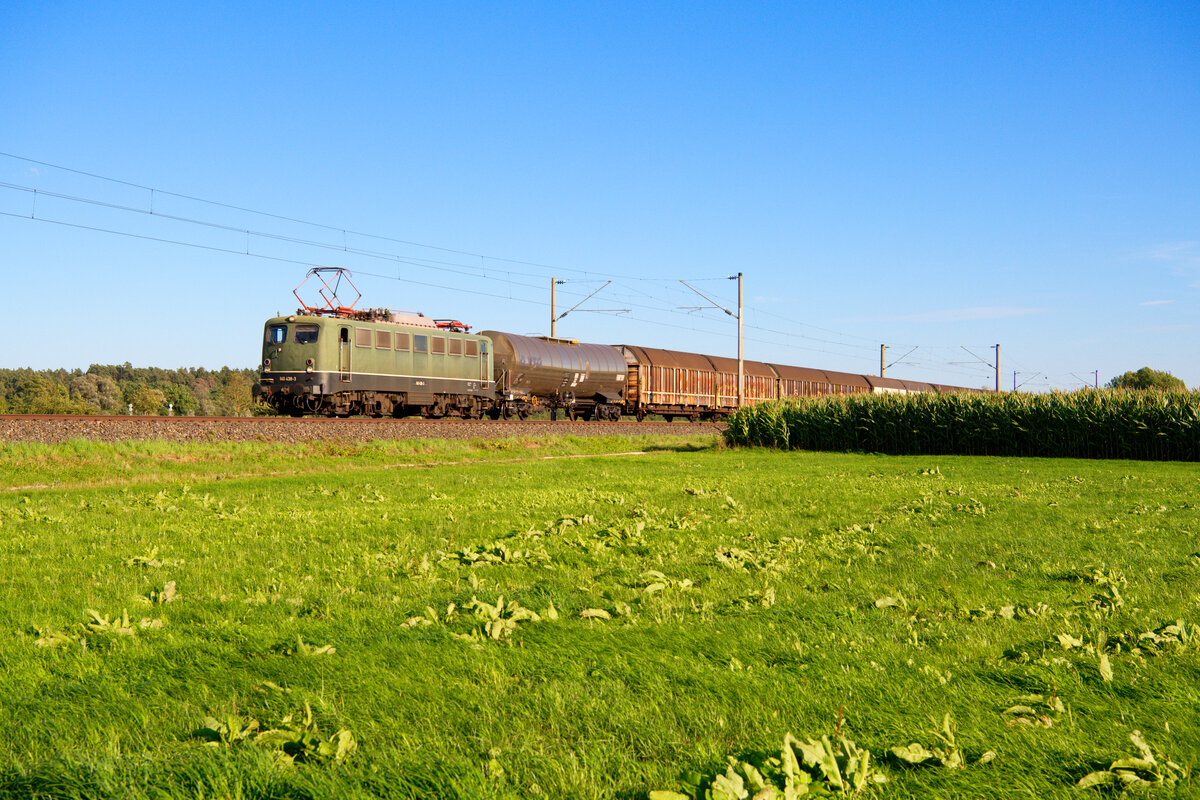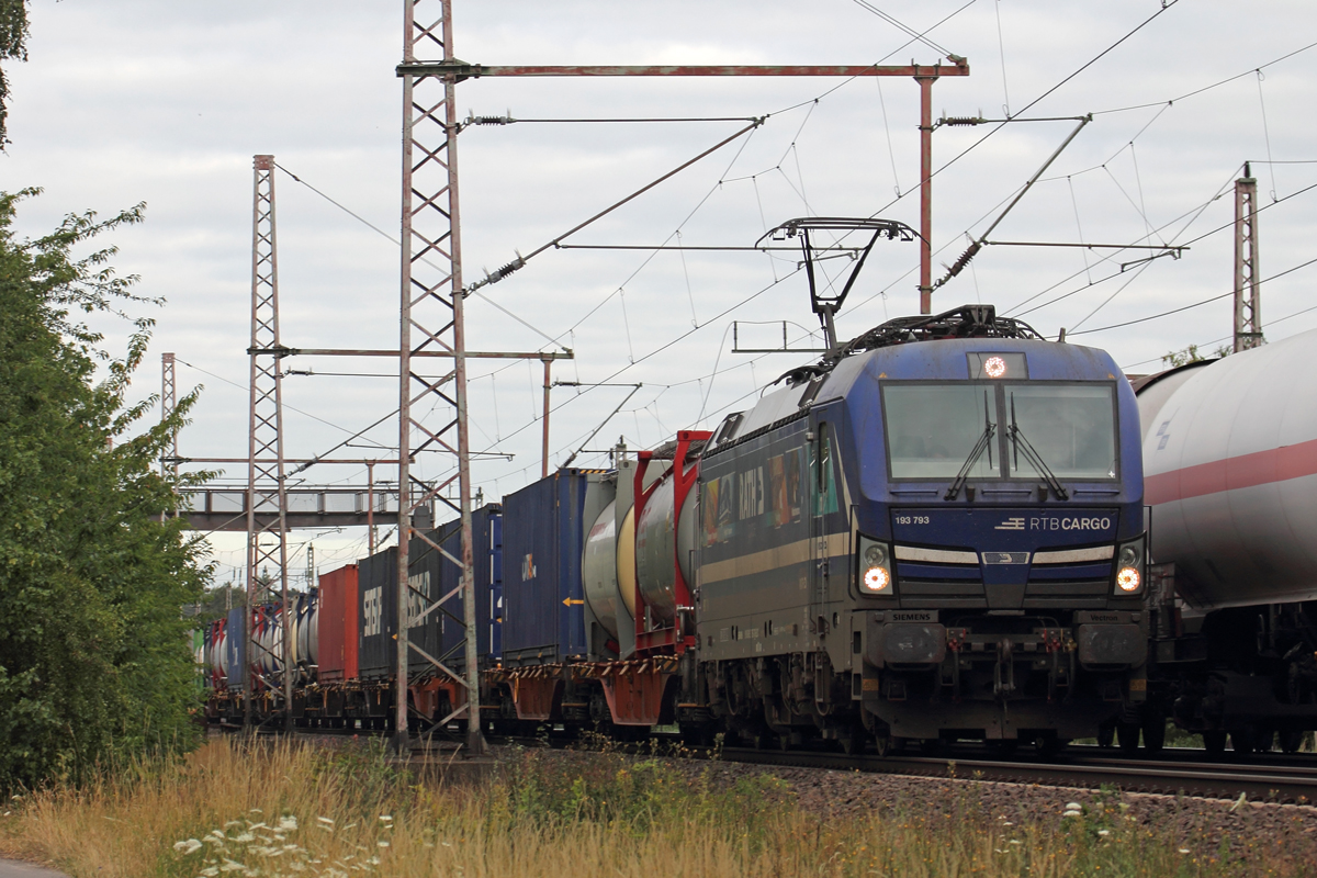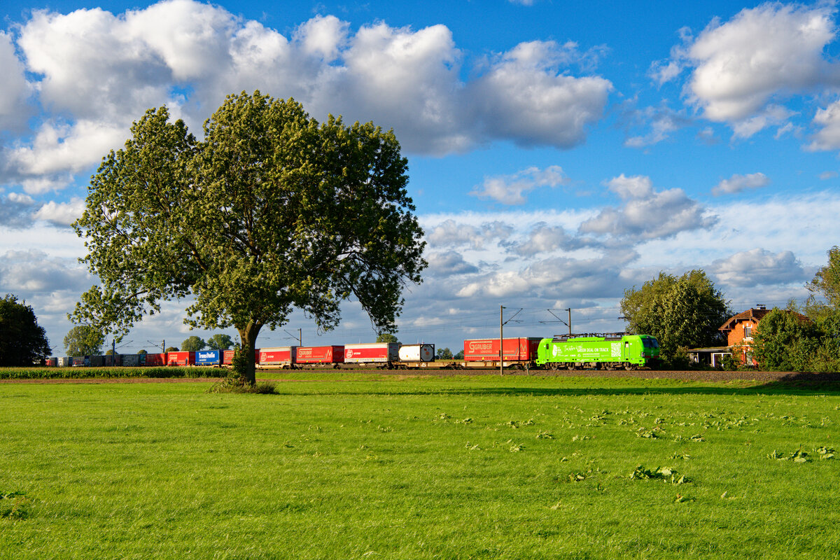 193 281 ELL/TXL "Green Deal on Track" mit einem KLV-Zug bei Triesdorf Richtung Treuchtlingen, 26.08.2020