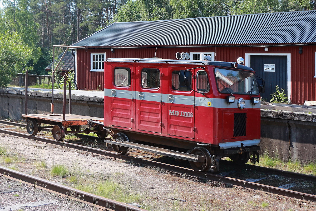 An der Station Jokkmokk (Schweden) steht am 27. Juni 2022 ein Manschaftswagen MD 131808 mit Anhänger.
