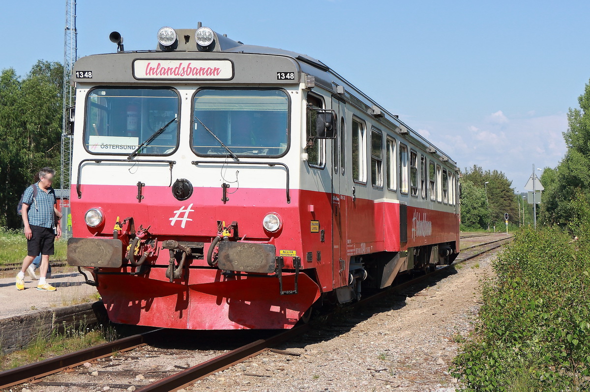 Bei Storuman startet am 27. Juni 2022 der Dieseltriebzug 1348 zur der insgesamt 1.062 km langen Bahnfahrt auf der Inlandsbahn.