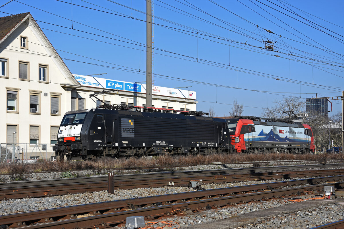 Doppeltraktion, mit den Loks 193 468-6 und 189 994-7 durchfährt den Bahnhof Pratteln. Die Aufnahme stammt vom 03.03.2022.