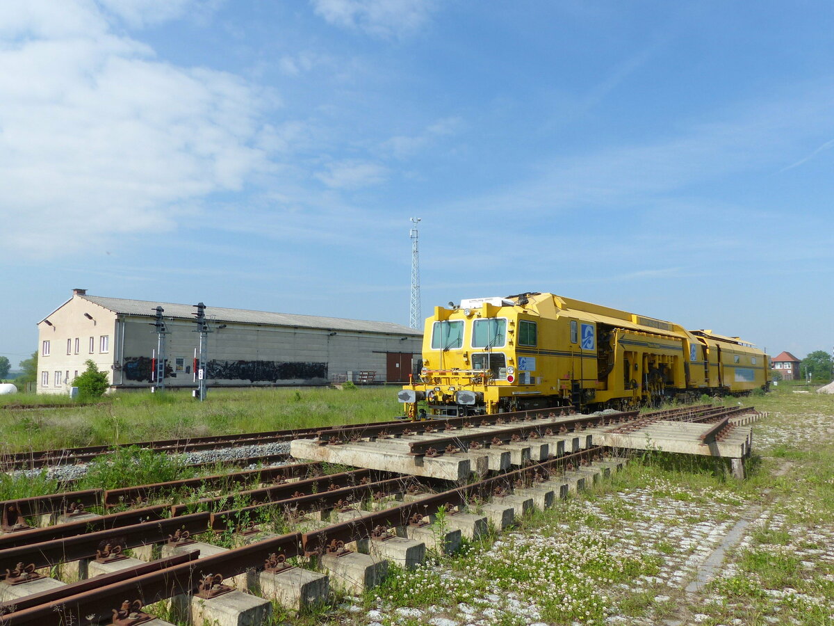 Erfurter Gleisbau 97 43 55 510 17-9 Universal Stopfmaschine 09-32 Unimat 4S, am 21.05.2017 in abgestellt Kölleda.