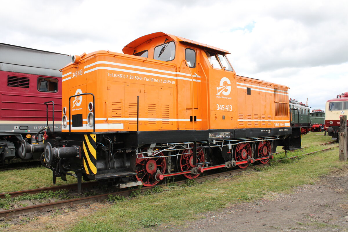 Erfurter Gleisbau V60 105-1 (98 80 3345 413-9 D-EGB) am 28.05.2022 beim Eisenbahnfest des Thüringer Eisenbahnvereins im ehem. Bw Weimar.