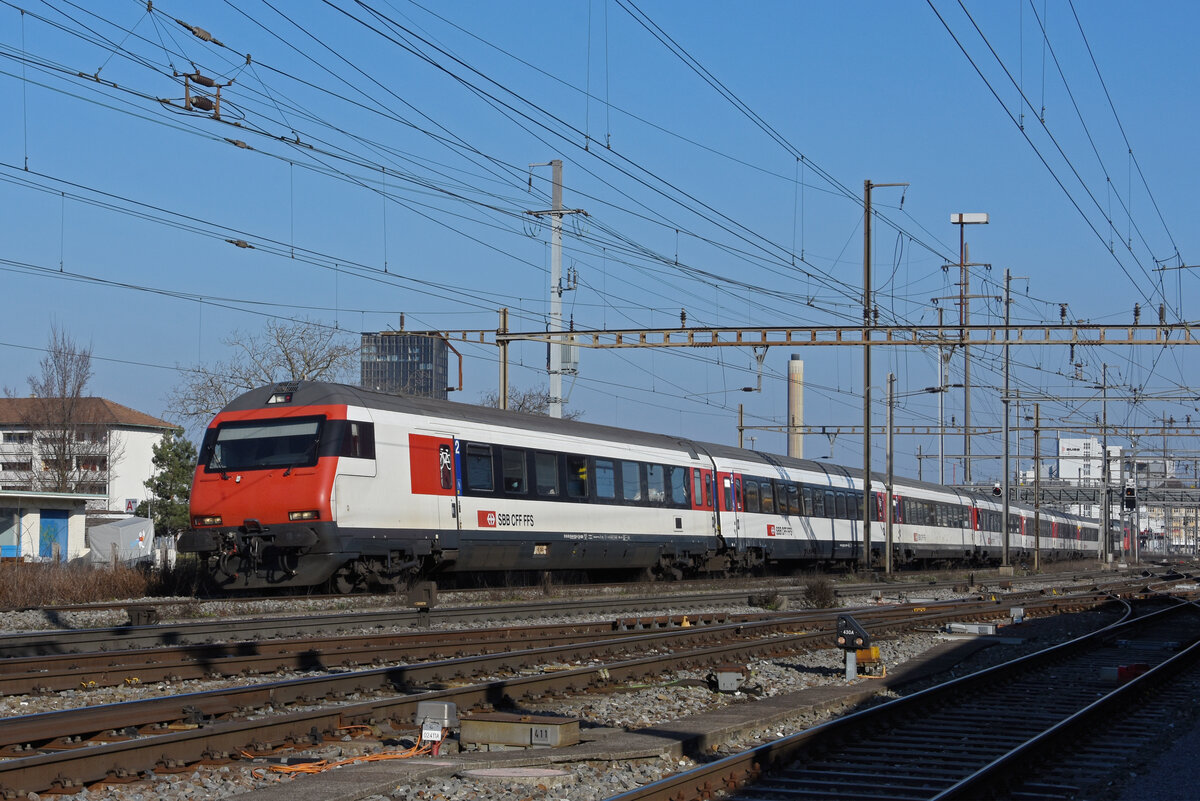 IC Steuerwagen Bt 50 85 28-94 932-6 durchfährt den Bahnhof Pratteln. Die Aufnahme stammt vom 03.03.2022.