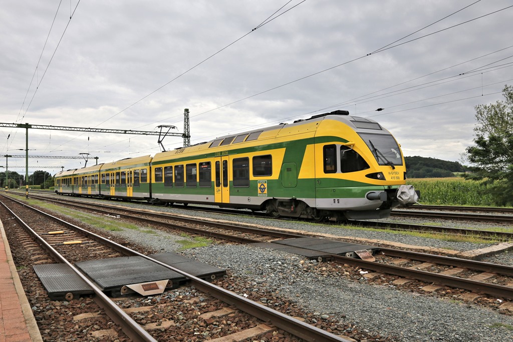 Im Bahnhof Szentgotthard wartete am 12.7.2022 um 9.12 Uhr dieser ET 415508 der GYSEV auf den nächsten Einsatz.