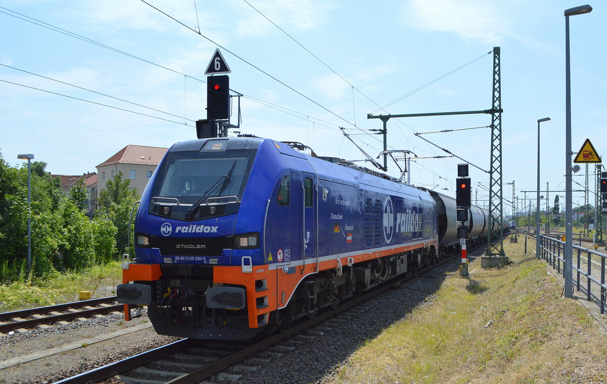 Raildox GmbH & Co. KG, Erfurt [D] mit der Eurodual Lok "159 220-3" (NVR: "90 80 2 159 220-3 D-RCM") und einem Getreidezug am 20.07.22 Durchfahrt Bahnhof Dessau Hbf.
