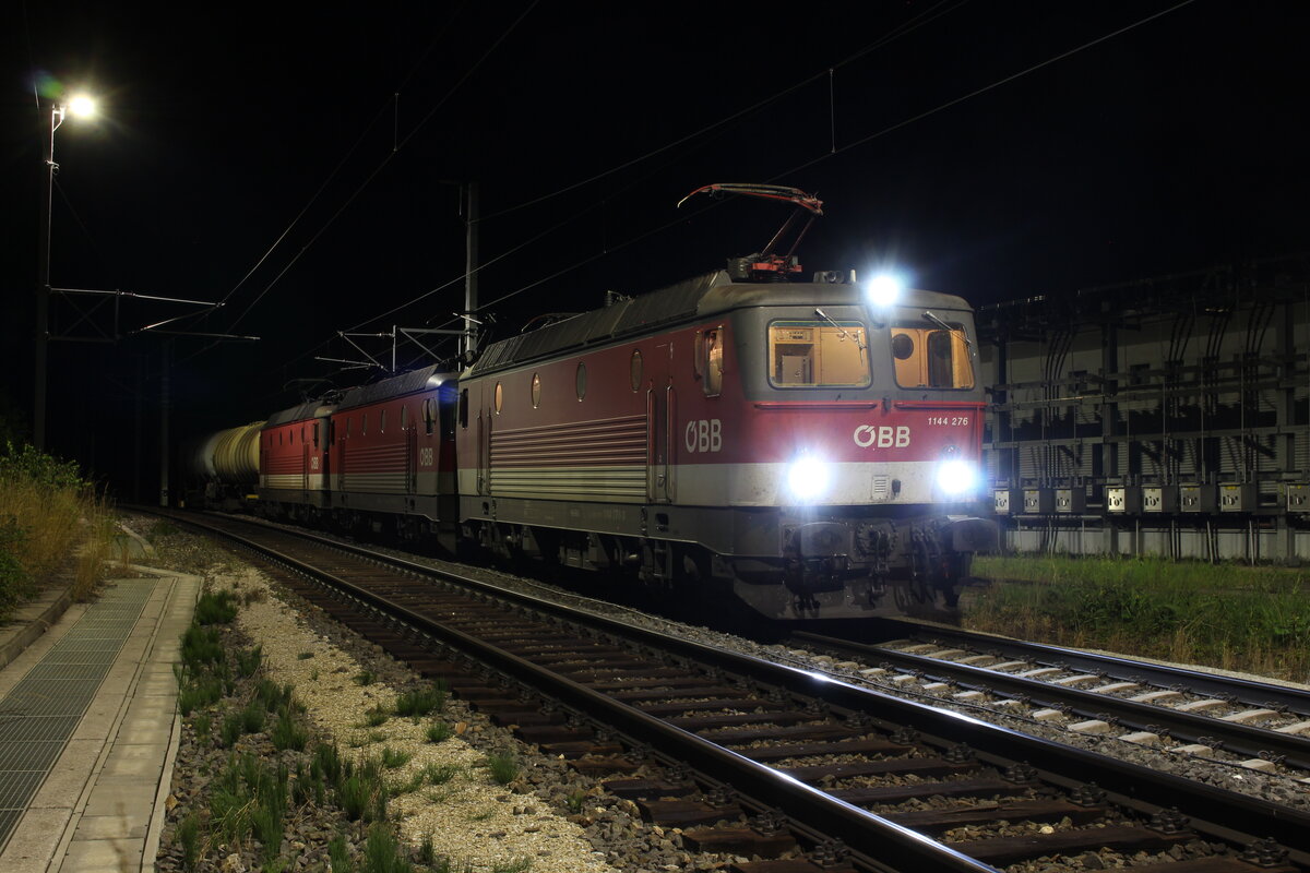 Am Abend des 20.7.2022 wurde der Kesselwagenganzzug von der 1144 276, 1144 094 und 1144 245 bespannt und wartet hier in Semmering Unterwerk auf die Weiterfahrt in Richtung Graz.