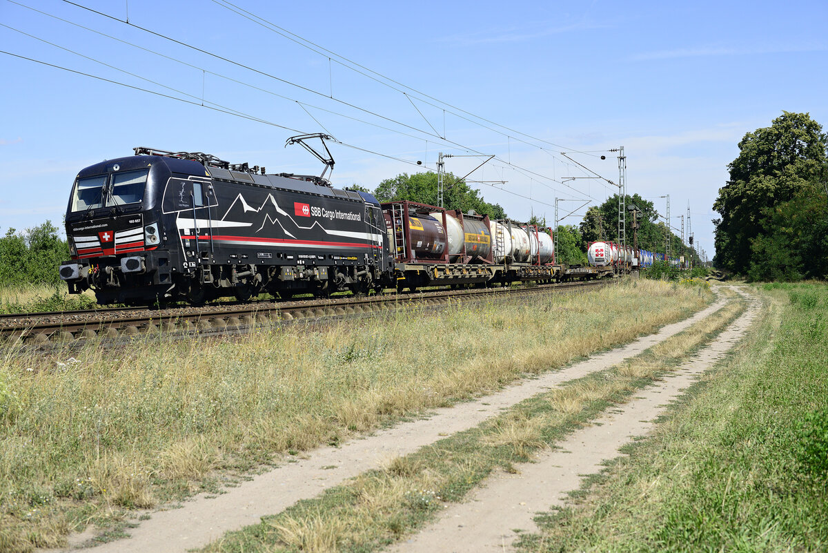 193 705 MRCE/Mercitalia Rail mit dem umgeleiteten Schenker KLV-Zug bei Uffenheim Richtung Würzburg,