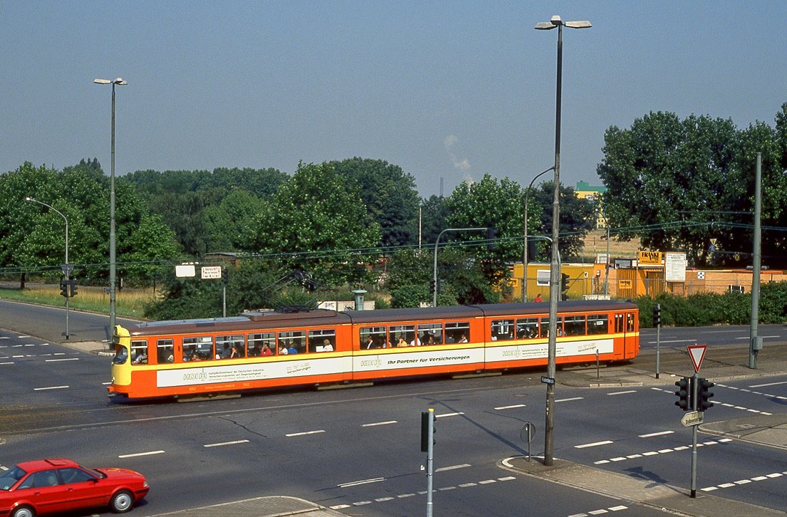 Triebzug 1047 fährt in Berlin Hallesches Tor aus gen Kottbusser Tor.