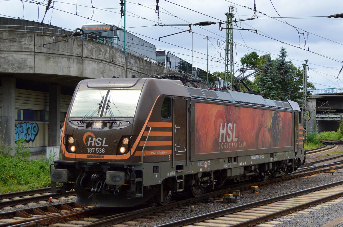 HSL Logistik GmbH, Hamburg [D] mit "187 536" [NVR-Nummer: 91 80 6187 536-8 D-HSL] am 22.07.22 Durchfahrt Bahnhof Hamburg-Harburg.