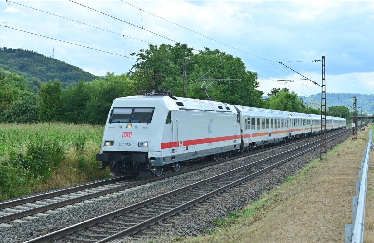 101 039 DB Fernverkehr mit einem IC bei Gollhofen Richtung Würzburg, 02.09.2020