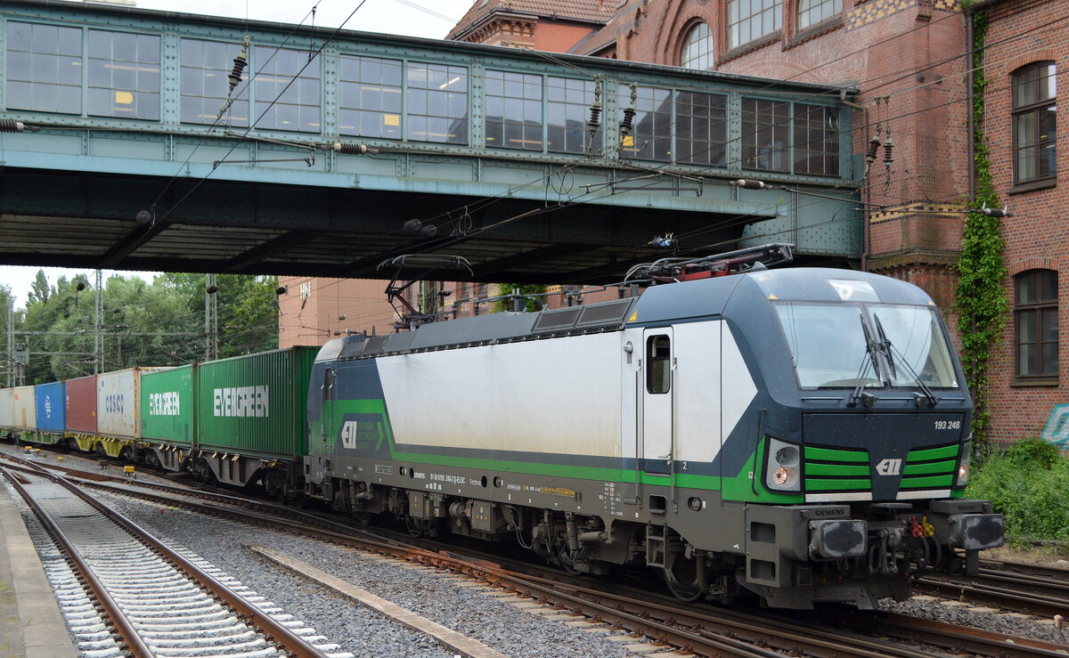 SETG - Salzburger Eisenbahn Transport Logistik GmbH, Salzburg [A] mit ELL Vectron "193 248" [NVR-Nummer: 91 80 6193 248-2 D-ELOC] und Containerzug Richtung Hamburger Hafen am 22.07.22 Durchfahrt Bhf. Hamburg-Harburg