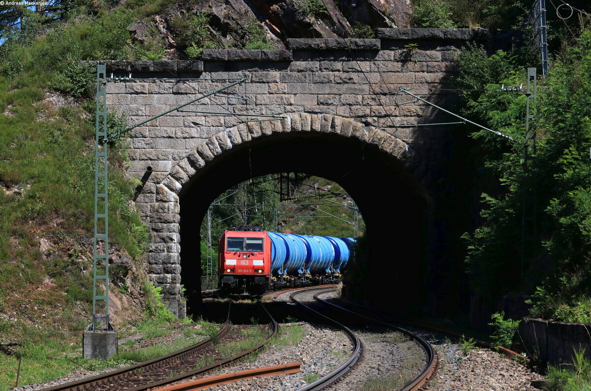 185 303-5 mit dem GAGC 60348 (Villingen(Schwarzw) - Karlsruhe Raffiniere) am 1. Seelenwaldtunnel 8.7.22