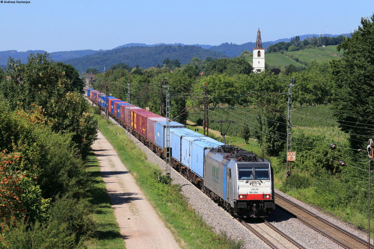 186 454-5 mit dem DGS 40059 (Lage Zwaluwe - MILANO SM) bei Denzlingen 8.7.22