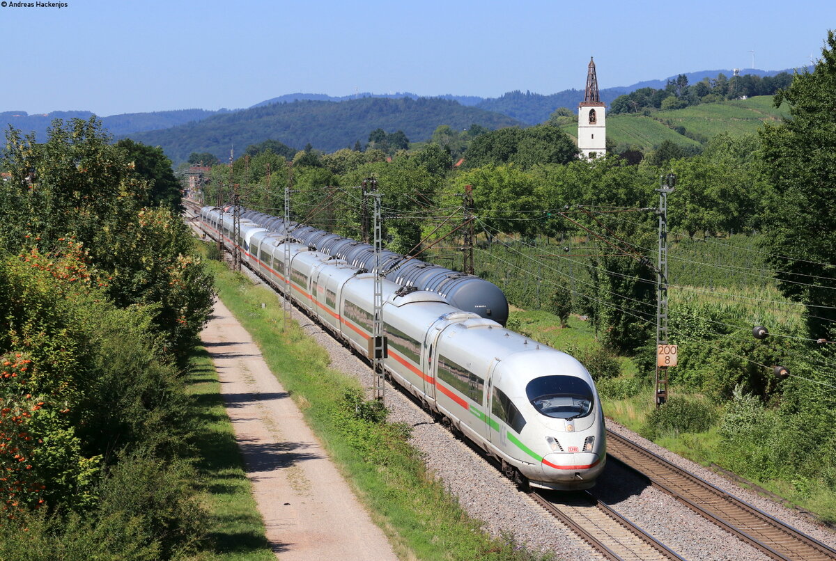 403 053-2 "Neu Ulm" und 403 058-1 "St.Ingert" als ICE 107 (Köln Hbf - Basel SBB) bei Denzlingen 8.7.22
