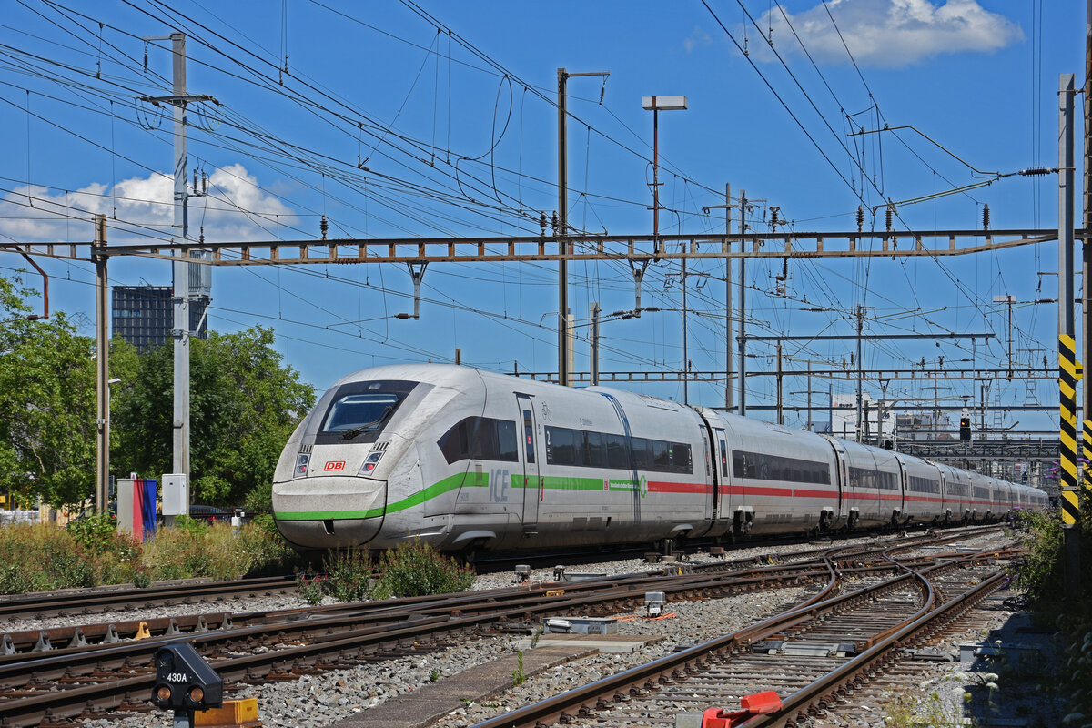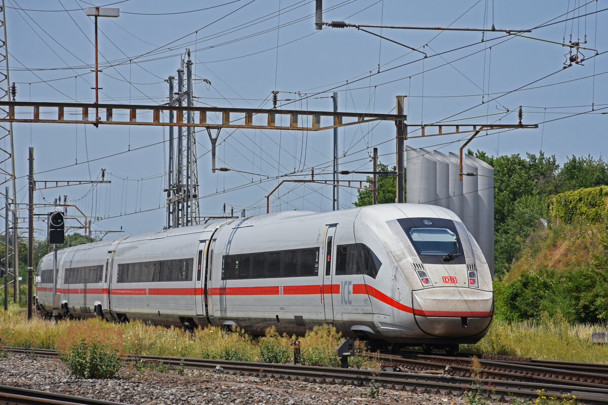 ICE 4 0812 072-8 durchfährt den Bahnhof Pratteln. Die Aufnahme stammt vom 18.06.2022.