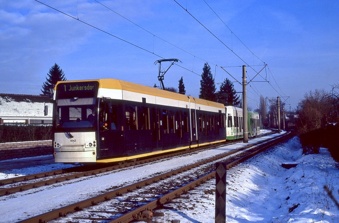 Am 04.04.2022 befand sich Tw404 mit einem Triebwagen der Reihe 100 auf dem Weg von Wien Oper nach Baden Josefsplatz. In Kürze wird der Bahnhof Wiener Neudorf erreicht.