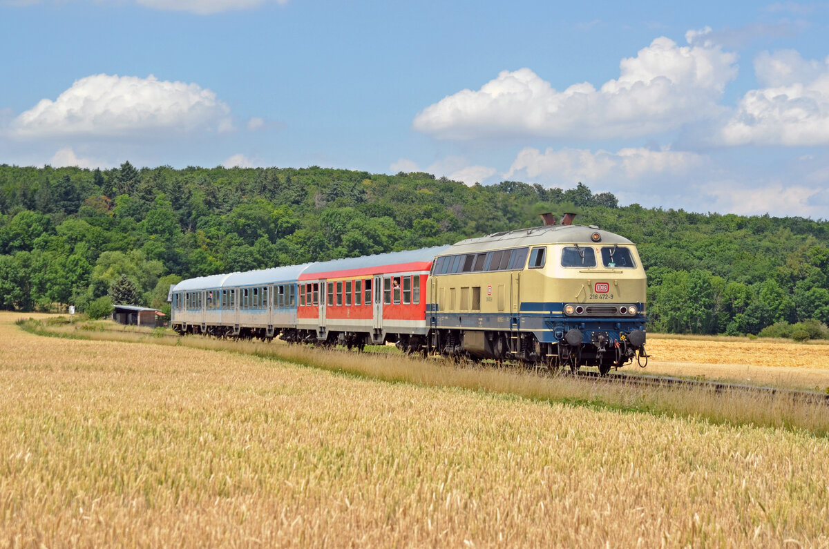 Mit einem Ersatzzug war 218 472 der Powerrail am 05.07.22 unterwegs von Goslar nach Magdeburg. Hier erreicht der Zug Ilsenburg.