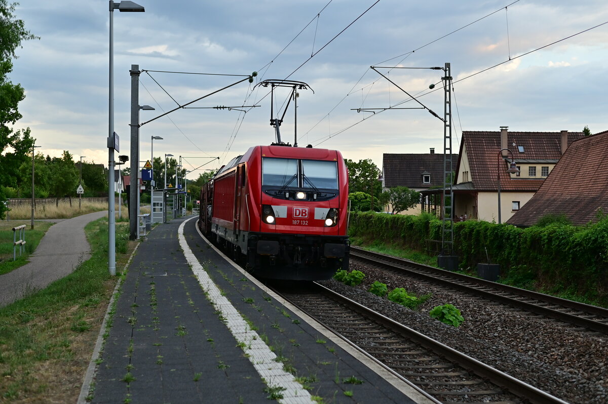 Mit einem Frachtenzug am Haken ist mir 187 132 in Offenau vor die Linse geraten am Abend des 29.7.2022