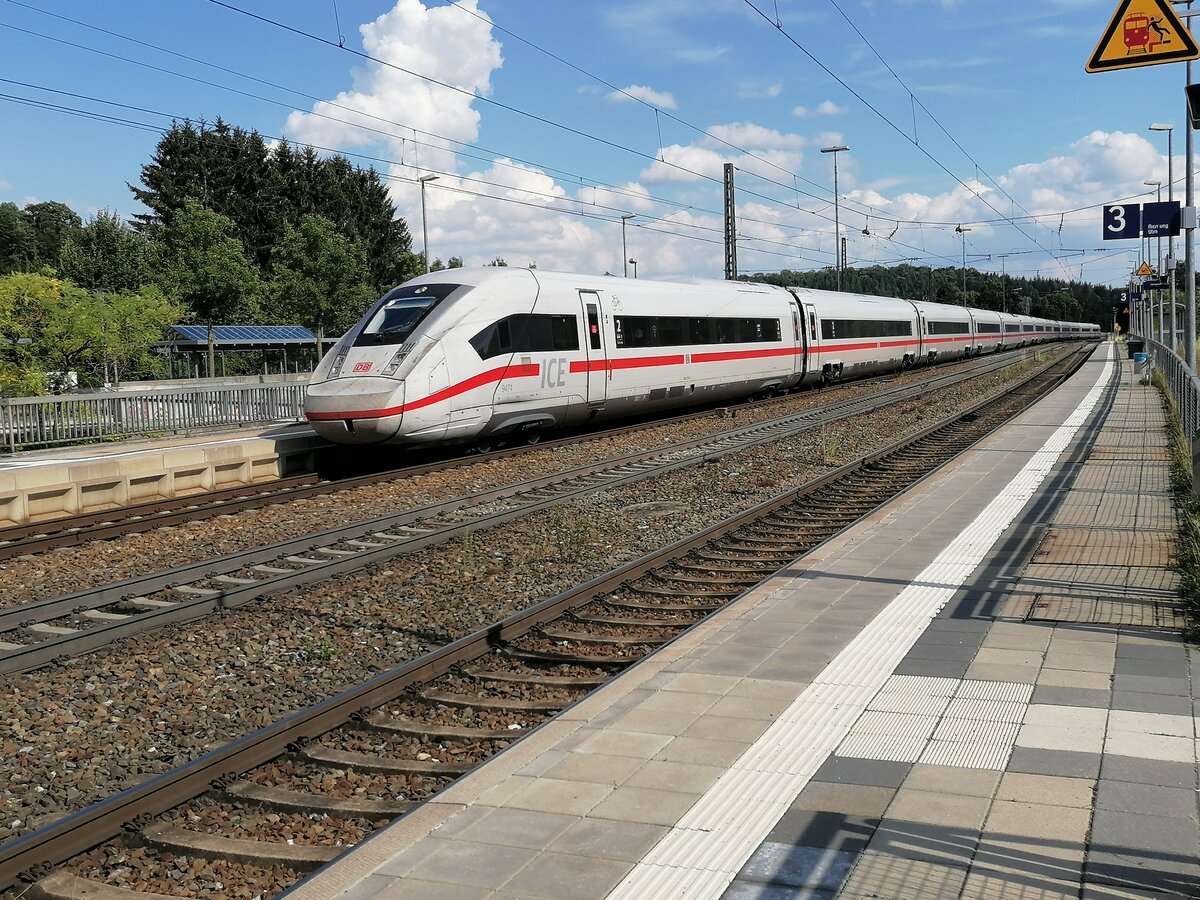 Unbekannter ICE4 auf dem Weg nach Stuttgart Hbf auf der Fahrt durch den Bahnhof Amstetten am 30.07.2022. Bis auf eine Ausnahme (ein ICE 1) waren alle ICE auf der Filstalbahn am heutigen Tag 412er ICEs
