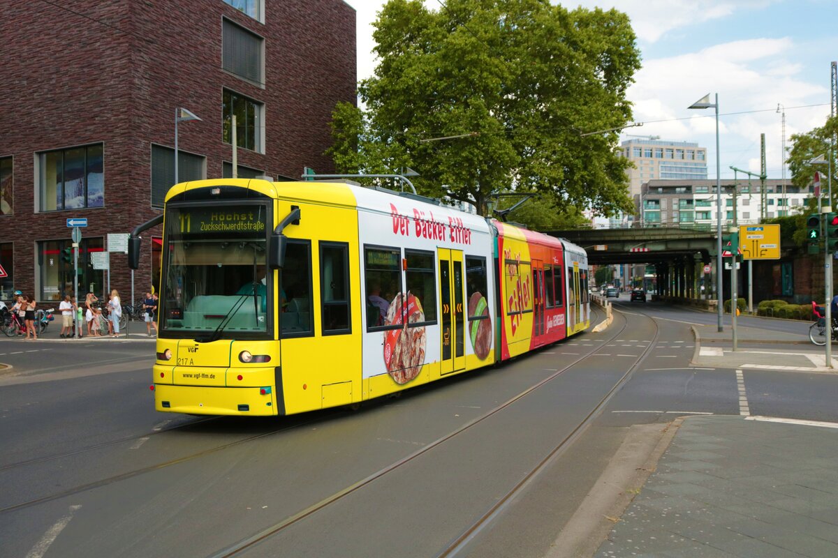VGF Bombardier Flexity Classic S-Wagen 217 am 23.07.22 in Frankfurt