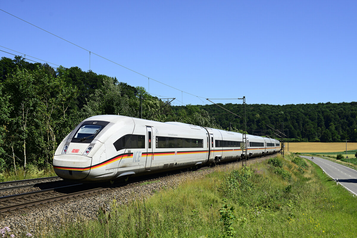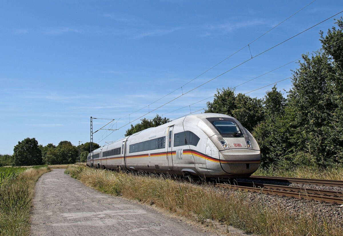 Triebzug 9457 (412 057) "Bundesrepublik Deutschland" als ICE 614 kurz vor dem Bahnhof Dortmund-Derne (17.07.2022)
