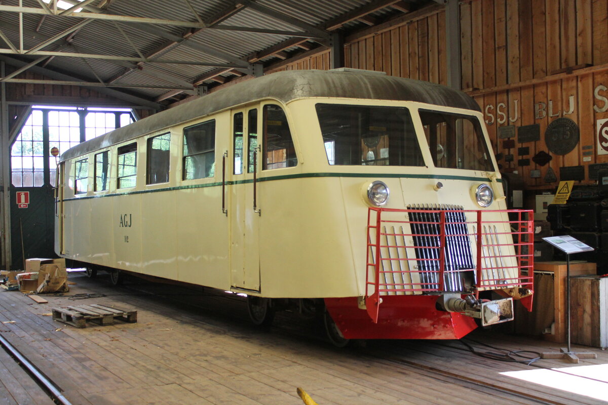 Abgestellter Triebwagen am 02.07.2022 im großen Schuppen in Anten. Er gehört der Anten-Gräfsnäs Järnväg die hier eine Museumsbahn betreiben.