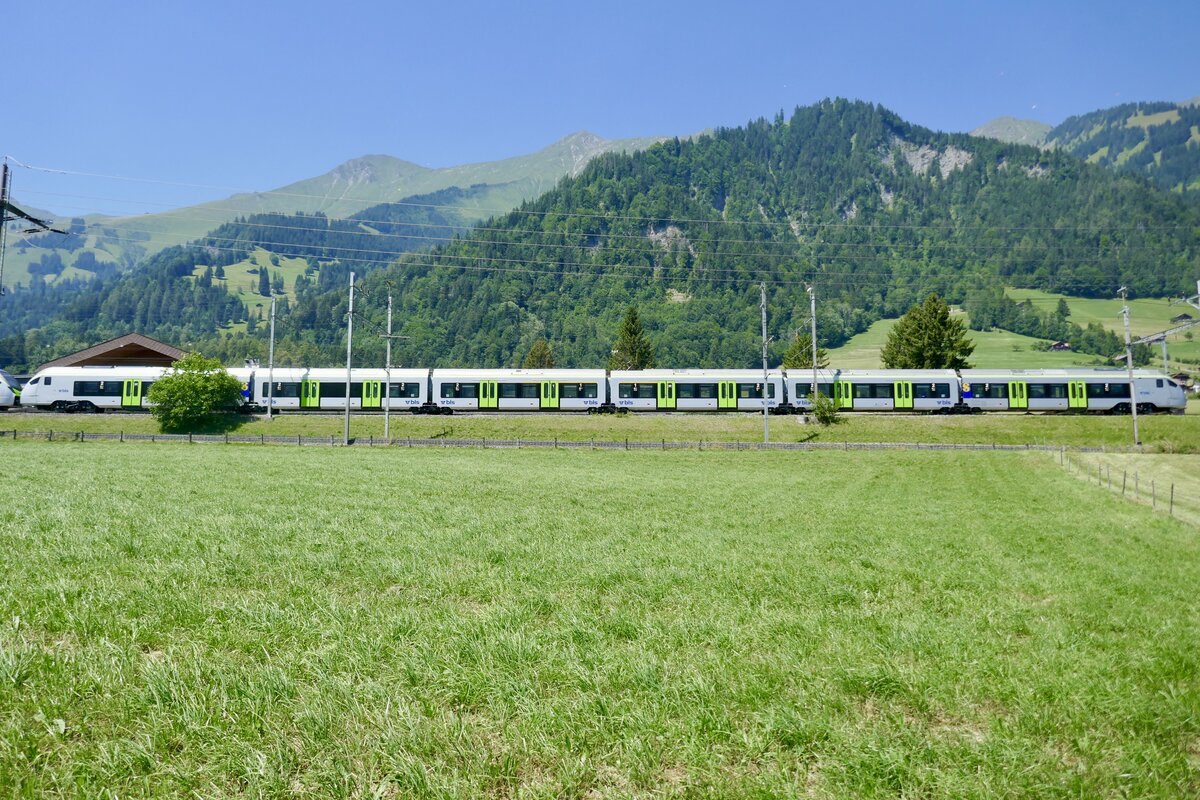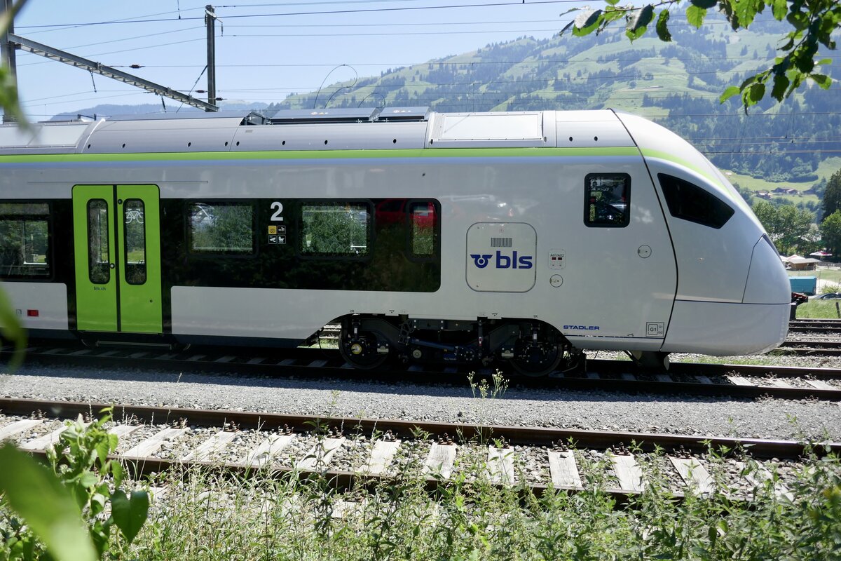 BLS S-Bahn MIKA RABe 528 201 am 17.7.22 bei Frutigen abgestellt.