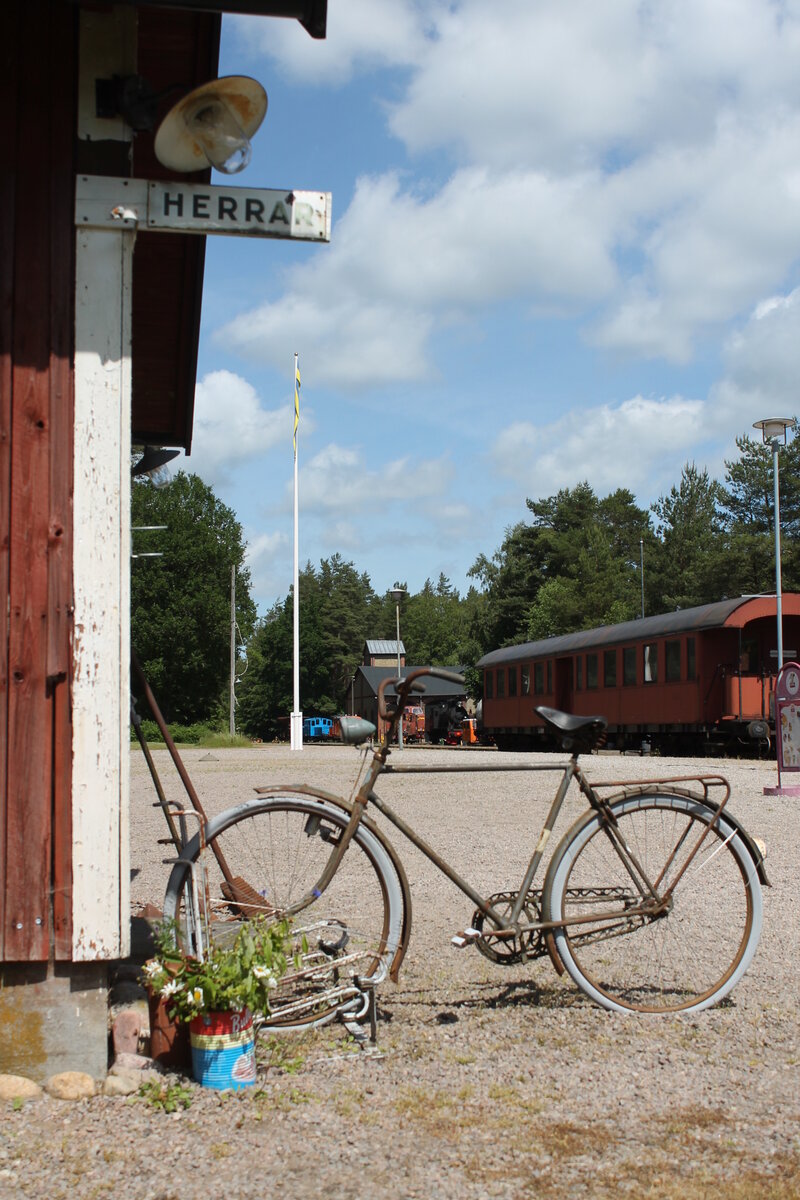 Der Fahrer des Fahrrades ist scheinbar schon länger mit dem Zug unterwegs. So gesehen am 21.07.2022 im Bahnhof Brösarp der Skånska Järnvägar.