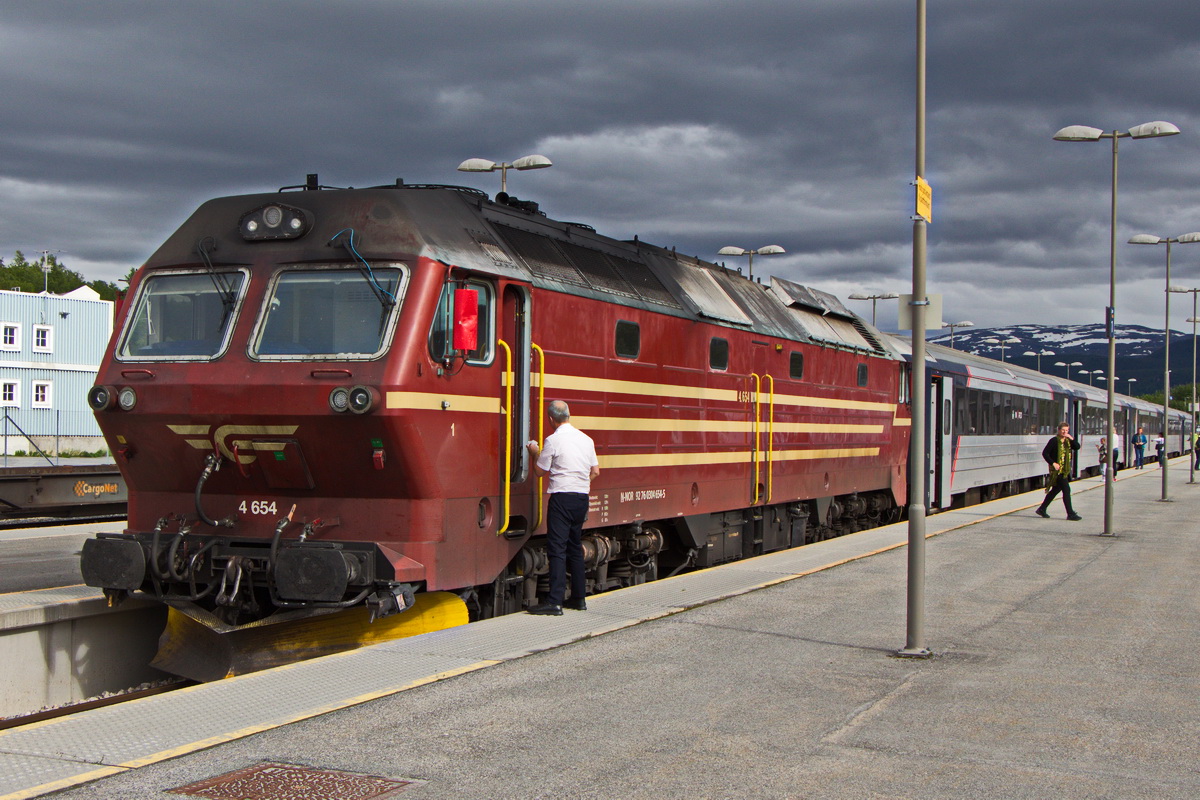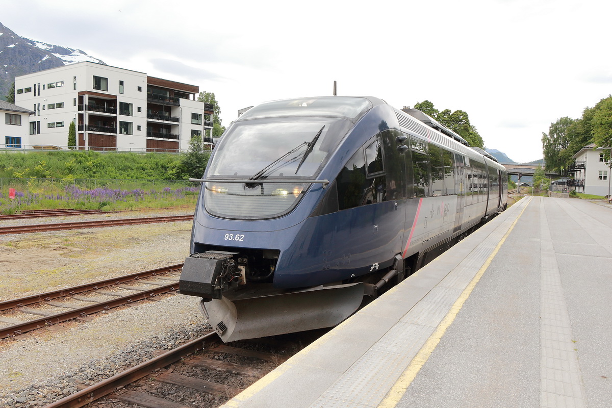 DI 4 654 steht am 24. Juni 2022 in Fauske stasjon zur Fensterreinigung.