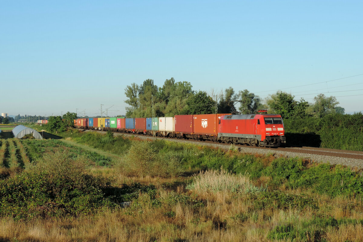 185 162 DB Cargo mit einem gemischten Güterzug bei Triesdorf Richtung Treuchtlingen, 26.08.2020