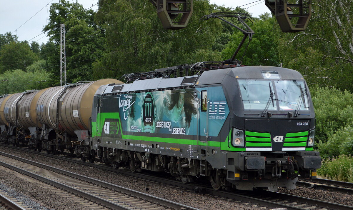 LTE Netherlands B.V., Rotterdam [NL] mit der "193 738" [NVR-Nummer: 91 80 6193 738-2 D-ELOC] und Kesselwagenzug am 08.07.22 Vorbeifahrt Bahnhof Dedensen Gümmer.