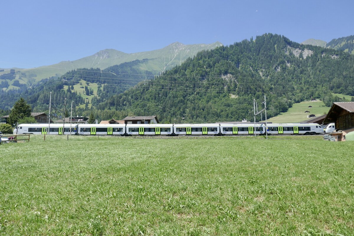 BLS MIKA RABe 528 202 und 201 am 17.7.22 in Frutigen abgestellt.