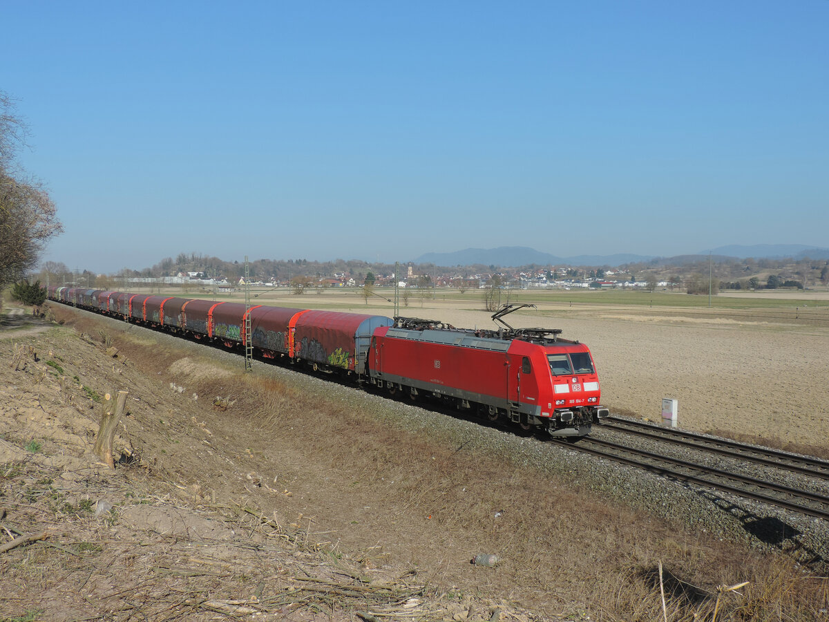 Oberschopfheim - 10. März 2022 : 185 104 mit dem 45013 von Mannheim nach Chiasso.