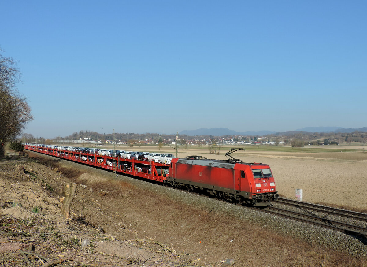 Oberschopfheim - 10. März 2022 : 185 231 mit einem Autozug.