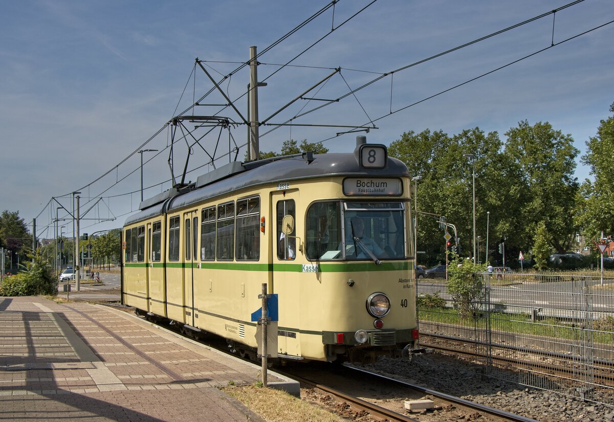 B-Wagen 333 und 301 der DSW21 auf der Linie U42 im Einschnitt zwischen Gleiwitzstraße und Kirchderne (17.07.2022)