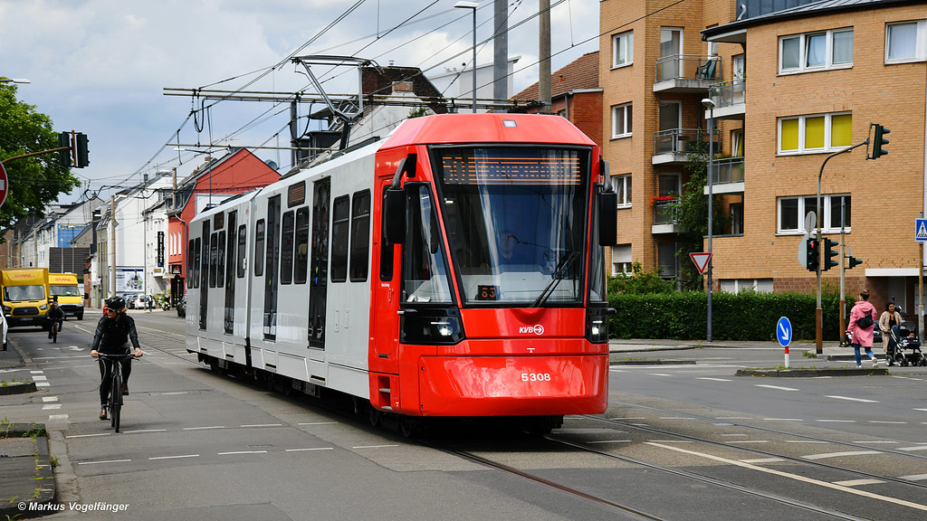 Am frühen Morgen des 01. Juni 2022 wurde HF6 5308 in Köln angeliefert. Hier während seiner ersten Fahrt auf öffentlichen Kölner Gleisen auf der Neusser Straße am 01.06.2022.