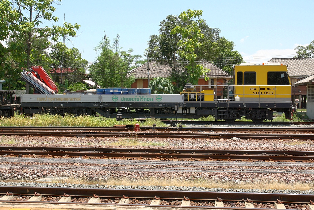 SRT รบน.037, ein Oberbauwagen der Type DHW-400 am 20.Mai 2018 in der Nakhon Lampang Station.