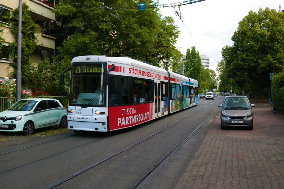VGF Bombardier Flexity Classic S-Wagen 249+2xx als Linie 20 am 27.05.22 in Frankfurt