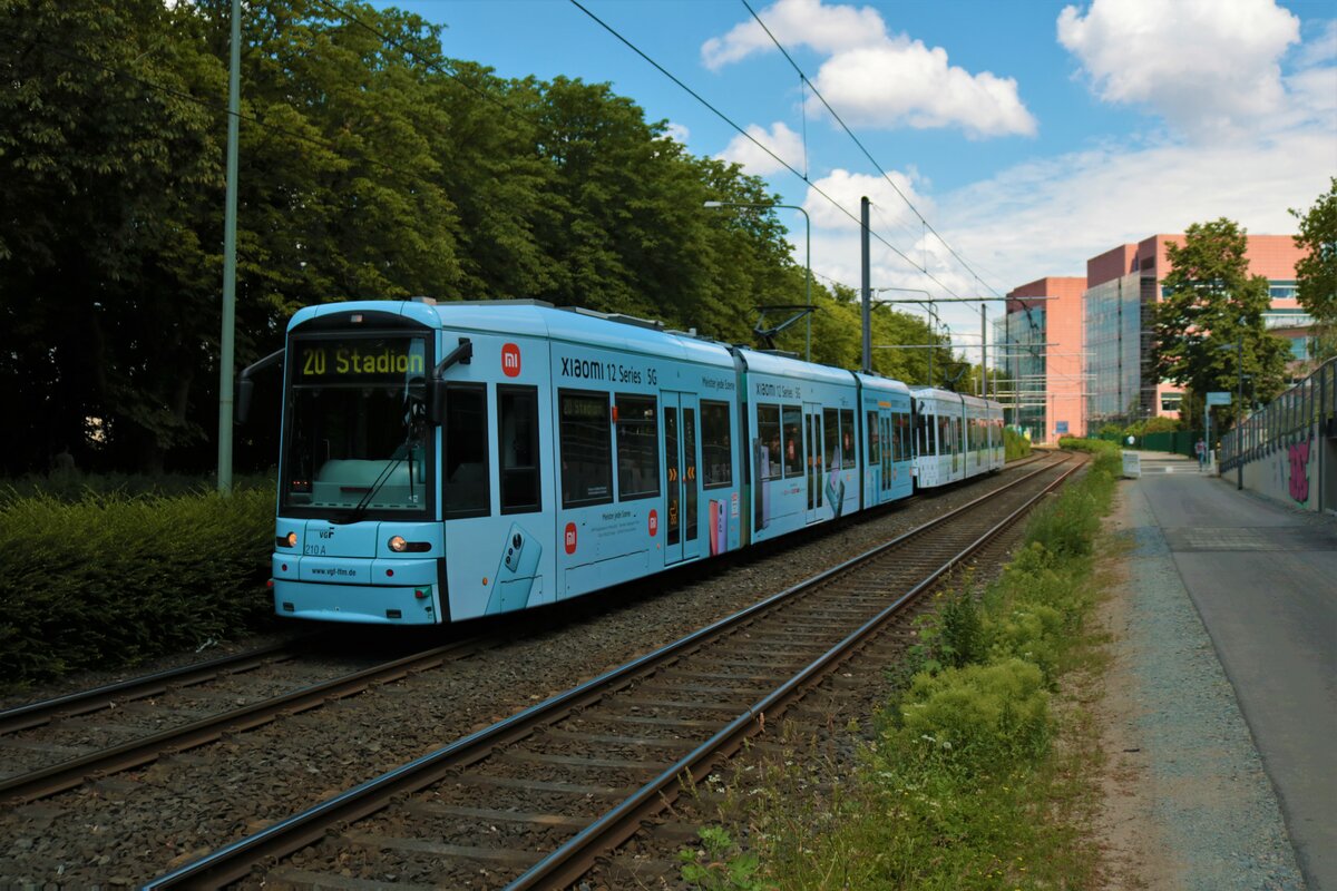 VGF Düwag Pt Wagen 720+736 am 04.06.22 als Linie 20 zum Stadion in Frankfurt am Main