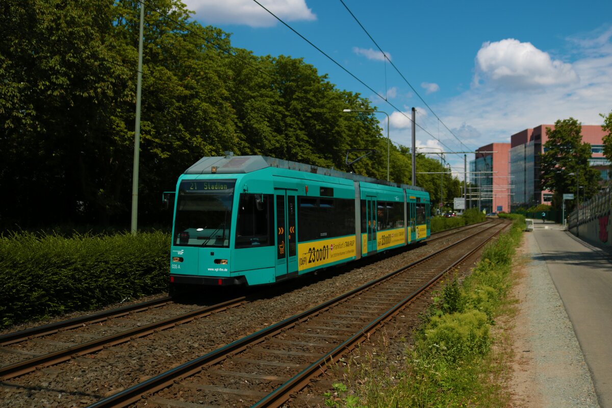 VGF Bombardier Flexity Classic S-Wagen 223+2xx als Linie 20 am 27.05.22 in Frankfurt