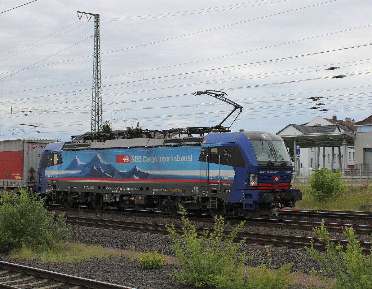 Railpool 185 671-5 und BBL 12 mit Schwenkdachwagen Richtung Fulda, am 08.06.2022 in Bad Hersfeld.