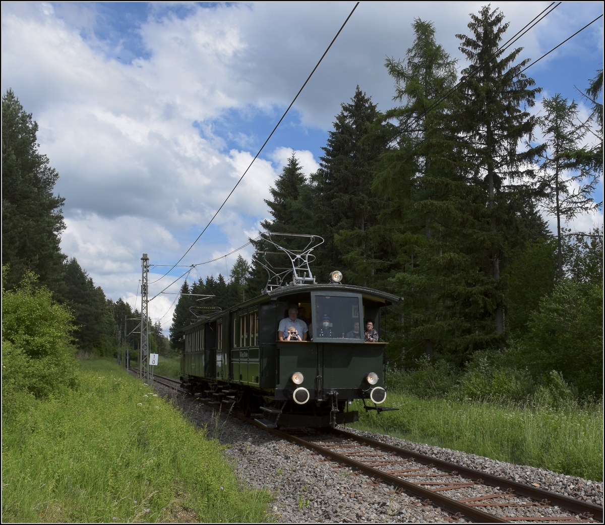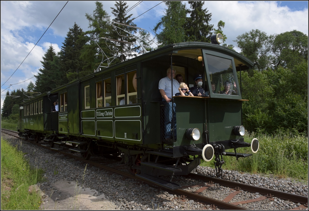 Natürlich auch die historischen Züge der Appenzeller Bahnen (AB) in Herisau am 12. Juni 2022.