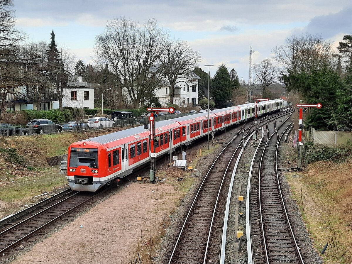 Das Bild war so nicht geplant - Eigentlich wollte ich die neu eingebaute Weiche von Gleis 1 zur neuen Bahnbrücke mit Blick durch die Überdachung des Treppenabganges zur Brücke und den beiden Tunnelportalen. Links nahm ich dann diesen ICE mit den Deutschlandfarben war, der aber dann durch meine gerade auf dem Gleis im Vordergrund einfahrende S-Bahn verdeckt wurde. Erst als diese dann wieder aus dem Blickfeld verschwand konnte ich diese Aufnahme der 13teiligen ICE 4 machen. Meine S-Bahn erreichte ich trotzdem noch, da Fahrgäste für mich die Türe noch blockierten, obwohl ich das eigentlich gar nicht verlangte. Bei einem 15 Minuten-Takt ist ein Verpassen dann doch nicht so schlimm. Bahnhof Stuttgart-Bad Cannstatt. Die Gleisbauarbeiten haben begonnen, wie an dem Schotter vor dem Bagger zu erkennen ist. 22.02.2022 (M)