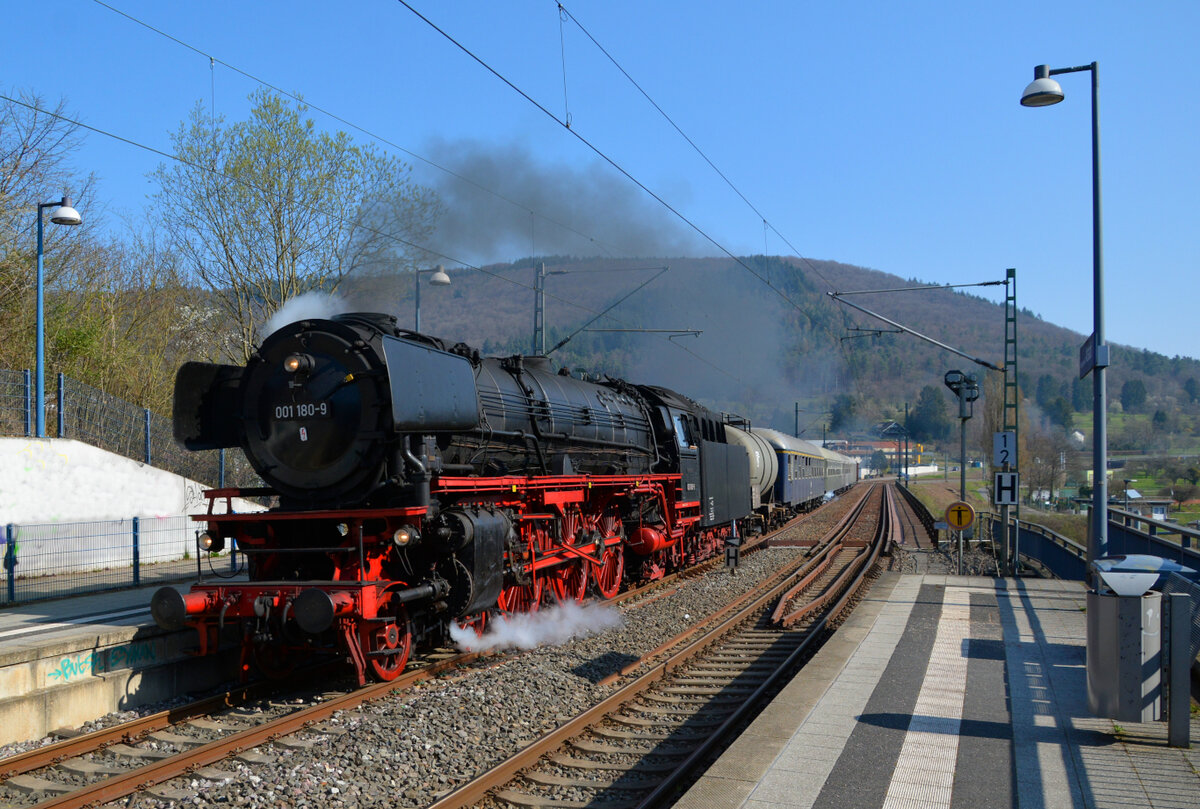 Nahaufnahme des Sonderzuges mit der 001 180-9 in Neckargerach am Samstag den 26.3.2022