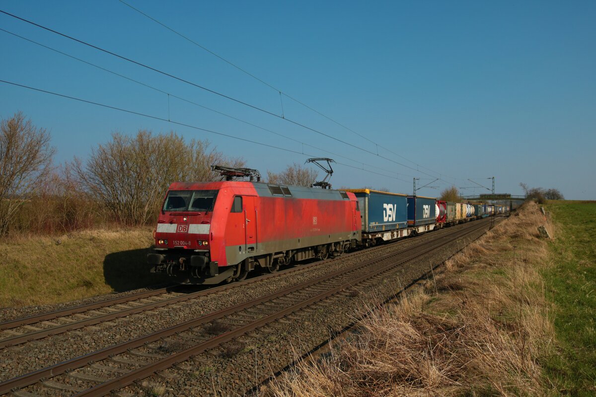 Mit einem Containerzug rollt 189 008 am 20.03.22 durch Jütrichau Richtung Magdeburg.