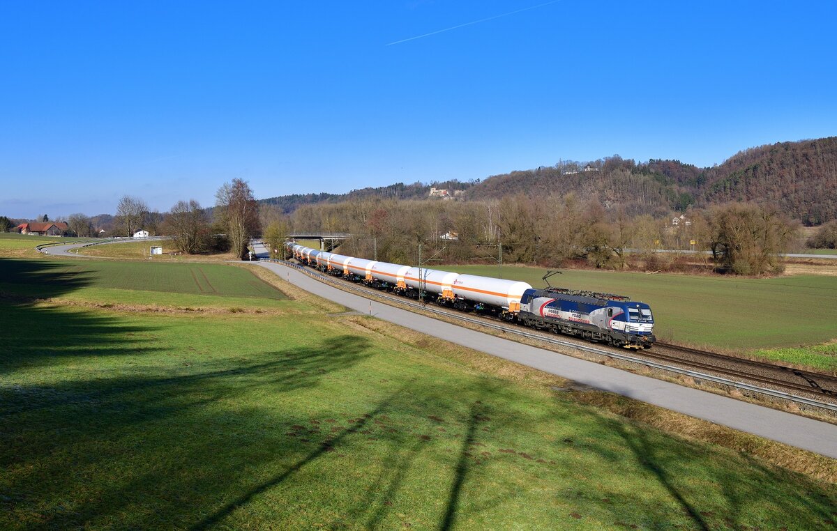 383 202 mit einem Gaskesselzug am 19.01.2022 bei Vilshofen.