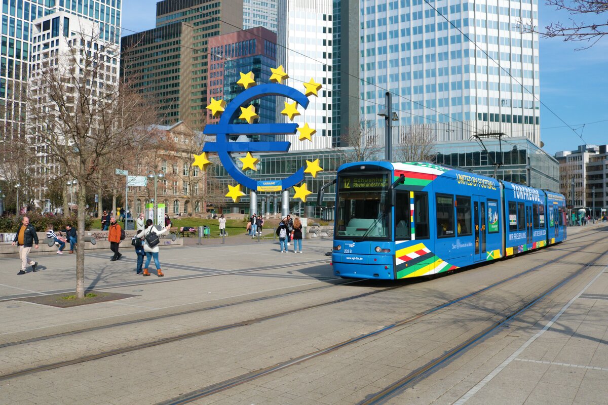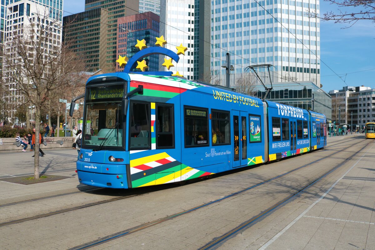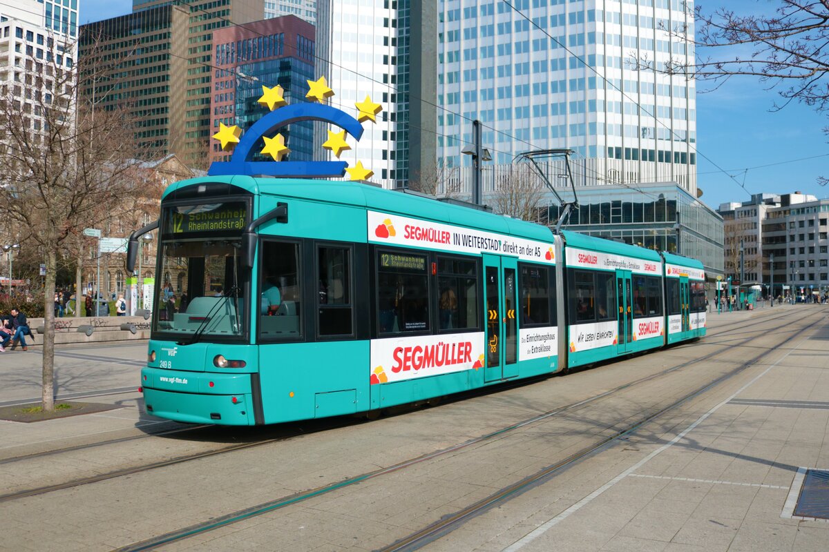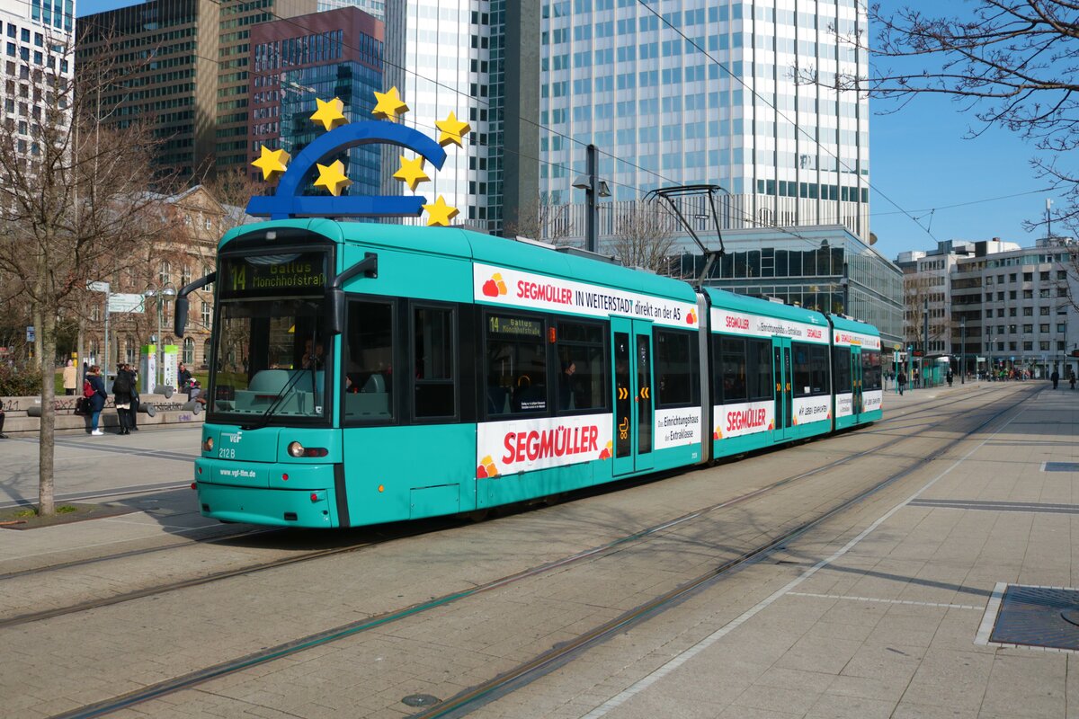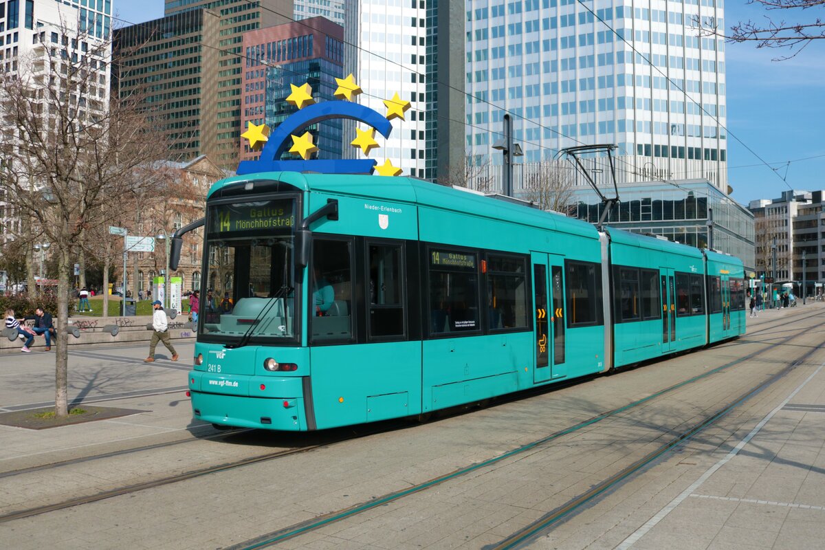 VGF Bombardier Flexity Classic S-Wagen 242 Gallus am 12.03.22 in Frankfurt